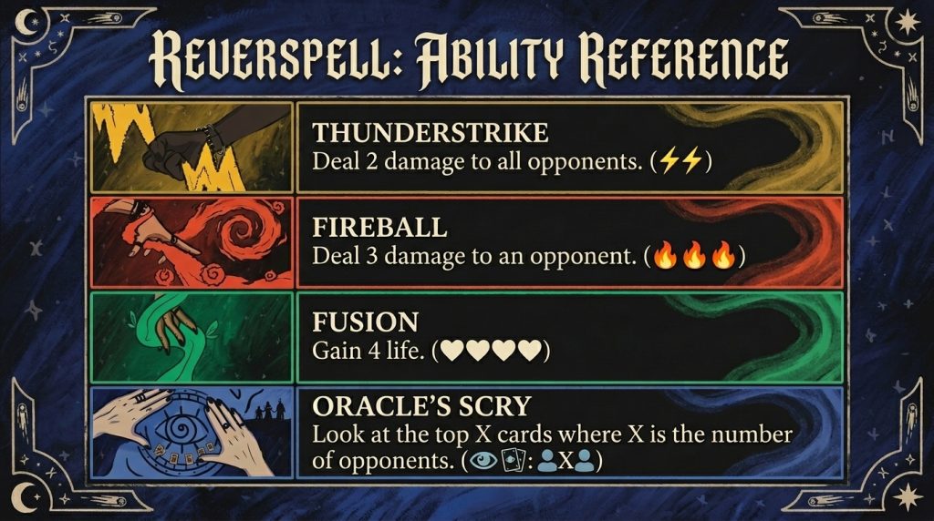 Step into the arena of Reverspell, a fast-paced tabletop game where every card drawn could be your triumph or your downfall.